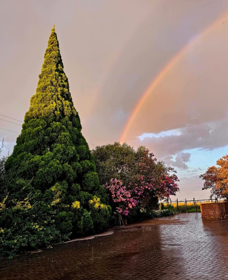 - The farm’s natural surroundings are evident, with rolling hills, fields and distant trees creating a breathtaking backdrop.